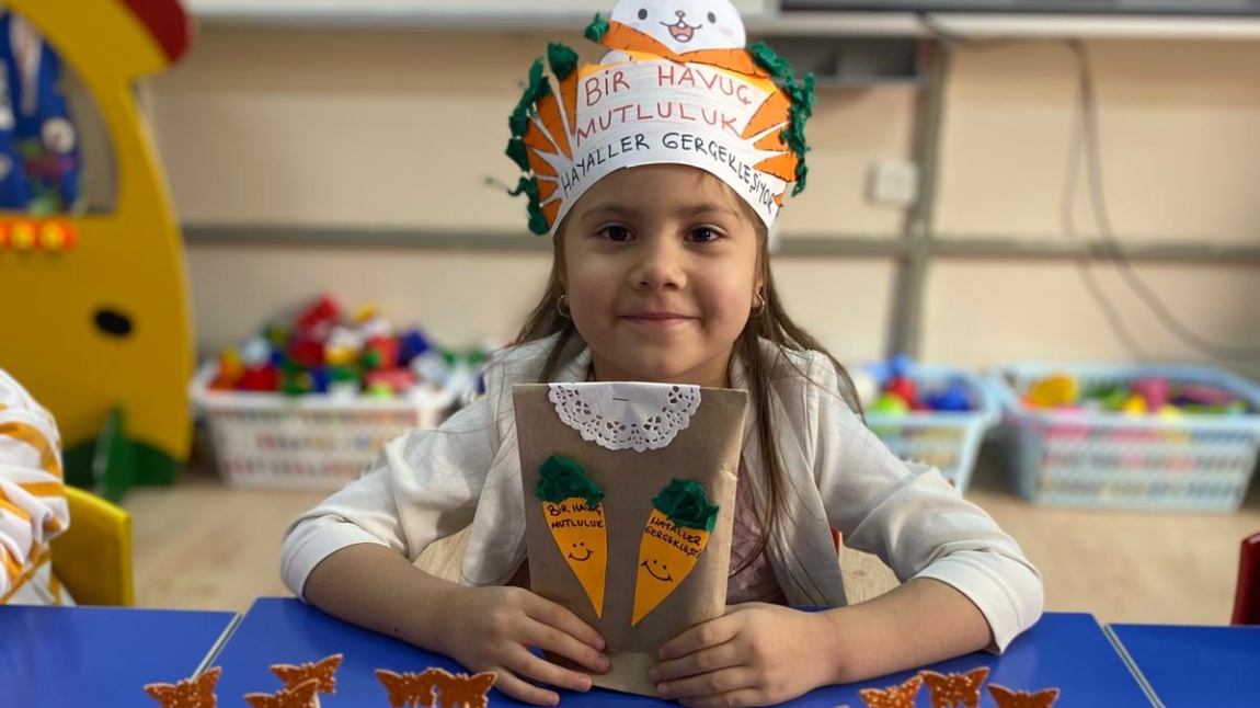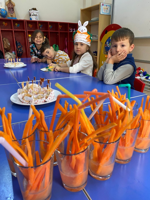 Nazlı’nın havuçlara olan ilgisi ve sevgisinden yola çıkılarak öğretmenleri tarafından özel bir sürpriz hazırlandı. Etkinlik kapsamında havuç bardakları, havuç topları, havuç tacı ve havuç kesesi tasarlandı. Sınıfta yapılan bu keyifli sürprizle Nazlı’nın mutluluğu görülmeye değerdi.