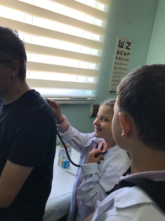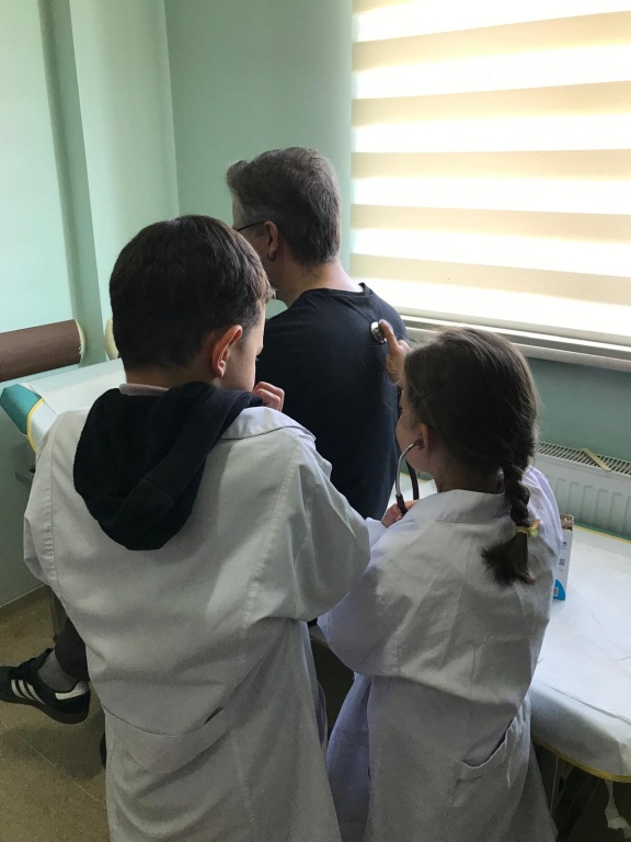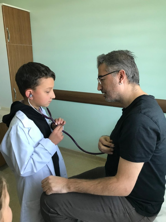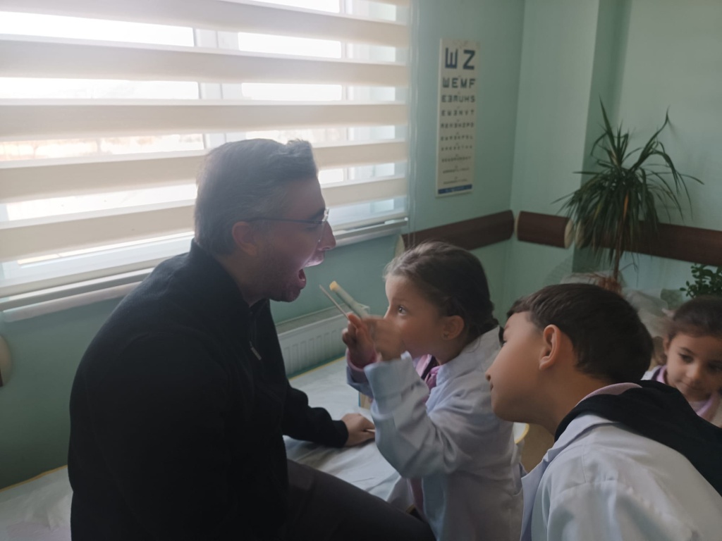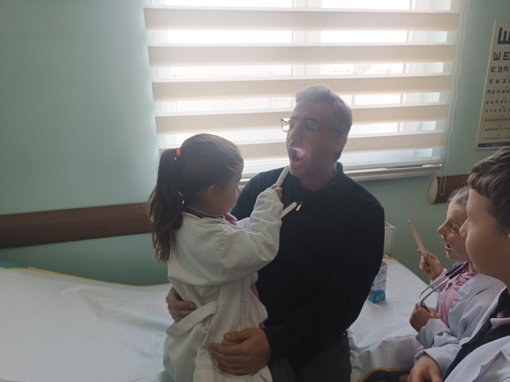 Ziyaret sırasında öğrencilerimiz, sağlık personelinden doktorluk mesleği, hasta muayene süreçleri ve hijyenin önemi hakkında bilgiler aldılar. Gerçek bir sağlık ortamında stetoskopla kalp atışı dinleme, tansiyon ölçümünü gözlemleme gibi etkinliklere katılan öğrencilerimiz büyük bir heyecan yaşadılar.